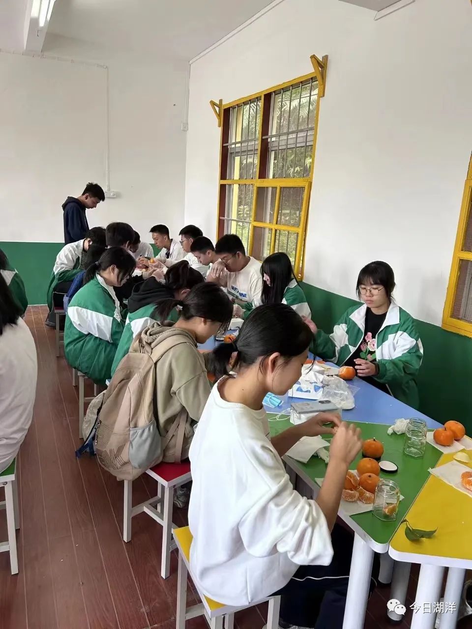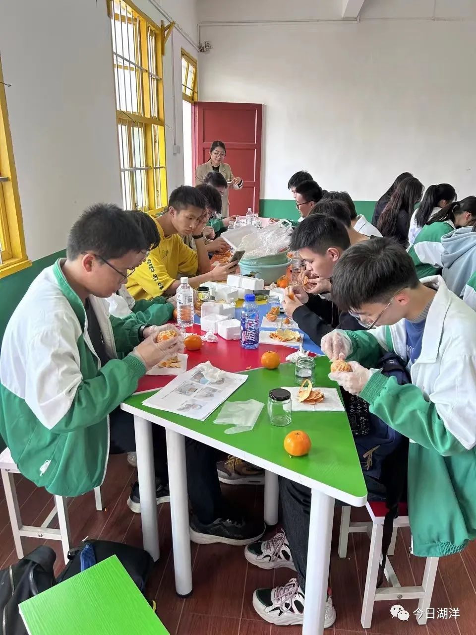上午,在农场基地里,同学们体验了一把动手采摘的乐趣。同学们品尝着自己采摘的芦柑,还动手将芦柑的果肉制成了罐头,从芦柑果皮中提取精油,体会到芦柑“一柑多用”的妙处,从实践中收获满满。
