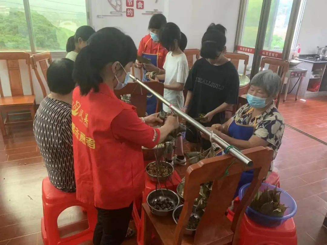 在凤美村“党建+”邻里中心,村民们带着儿女、孙子欢聚在共享厨房。粽叶舞动,麻绳穿梭,一个个饱满的粽子逐渐产生,现场洋溢着欢声笑语。在一楼更有爱心志愿者们带着浓浓的爱意为村内老人与儿童进行免费理发。活动的最后,志愿者们还提着热乎乎的粽子到了困难群众、独居老人等弱势群体的家中,为他们送上节日的关怀。