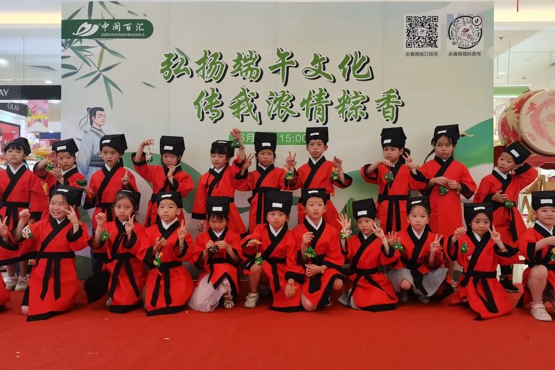 在桃联社区中闽百汇商场,邻里中心与其联办的端午活动深受欢迎。小朋友们穿着特色服装在现场进行香囊DIY、粽子DIY以及屈原诗朗诵。在家长的陪伴下,小朋友们深入了解了传统端午文化内涵,丰富了精神文化生活。