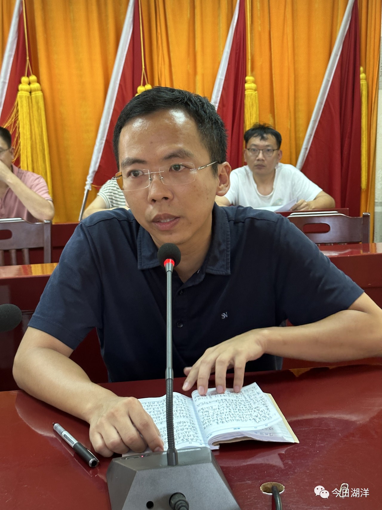 9月12日,湖洋镇召开全镇工作会议,贯彻落实上级会议精神,总结近期全镇工作开展成效,部署下一阶段工作任务,进一步明确目标、增强信心、鼓舞干劲、再加压力、再出实招,推动湖洋各项工作再上新台阶。会议由镇长龚新毅主持,镇全体干部职工、各村书记、各村土地协管员参加会议。