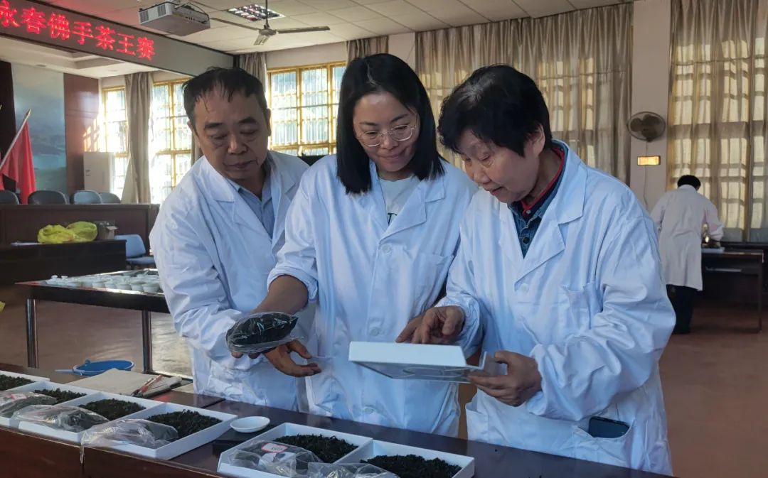茶王赛评选现场茶香弥漫,评审会邀请了国家高级评茶师陈郁榕教授等5位茶叶专家评委,依次对参赛茶样的外形、色泽、香气、滋味、汤色、叶底等6个层面进行评审,经过层层比拼,最终评出清香型茶王1名、金奖2名、银奖3名。
