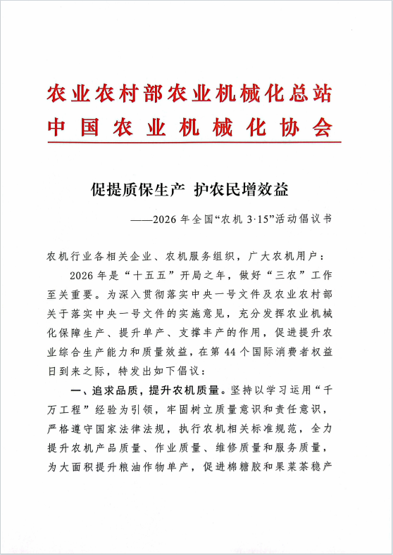 2026年全国“农机3·15”活动倡议书