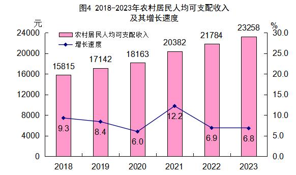 全年全县全体居民人均可支配收入33852元,比上年增长6.3%;人均生活消费支出22840元,比上年增长6.8%。农村居民人均可支配收入23258元,比上年增长6.8%;农村居民人均生活消费支出17057元,比上年增长6.0%。城镇居民人均可支配收入41683元,比上年增长5.8%;城镇居民人均生活消费支出27130元,比上年增长6.9%。城乡居民人均可支配收入比值为1.79,比上年缩小0.02。