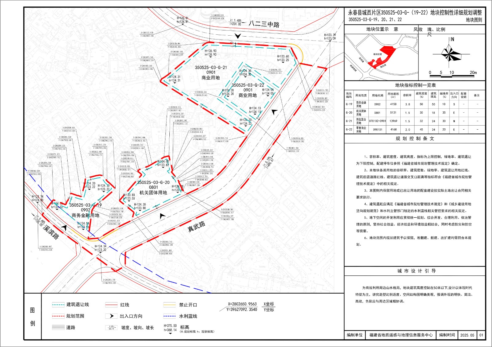 为进一步合理规划空间布局,加强永春县城区规划管理工作,特委托福建省地质遥感与地理信息服务中心编制《永春县城西片区350525-03-G-(19-22)地块控制性详细规划调整》。