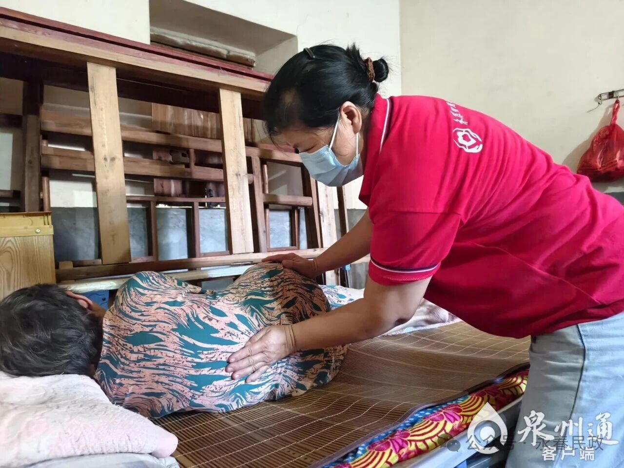 永春县第三方服务机构的助老员定期上门照料老人的生活起居 (苏榆轴 摄)