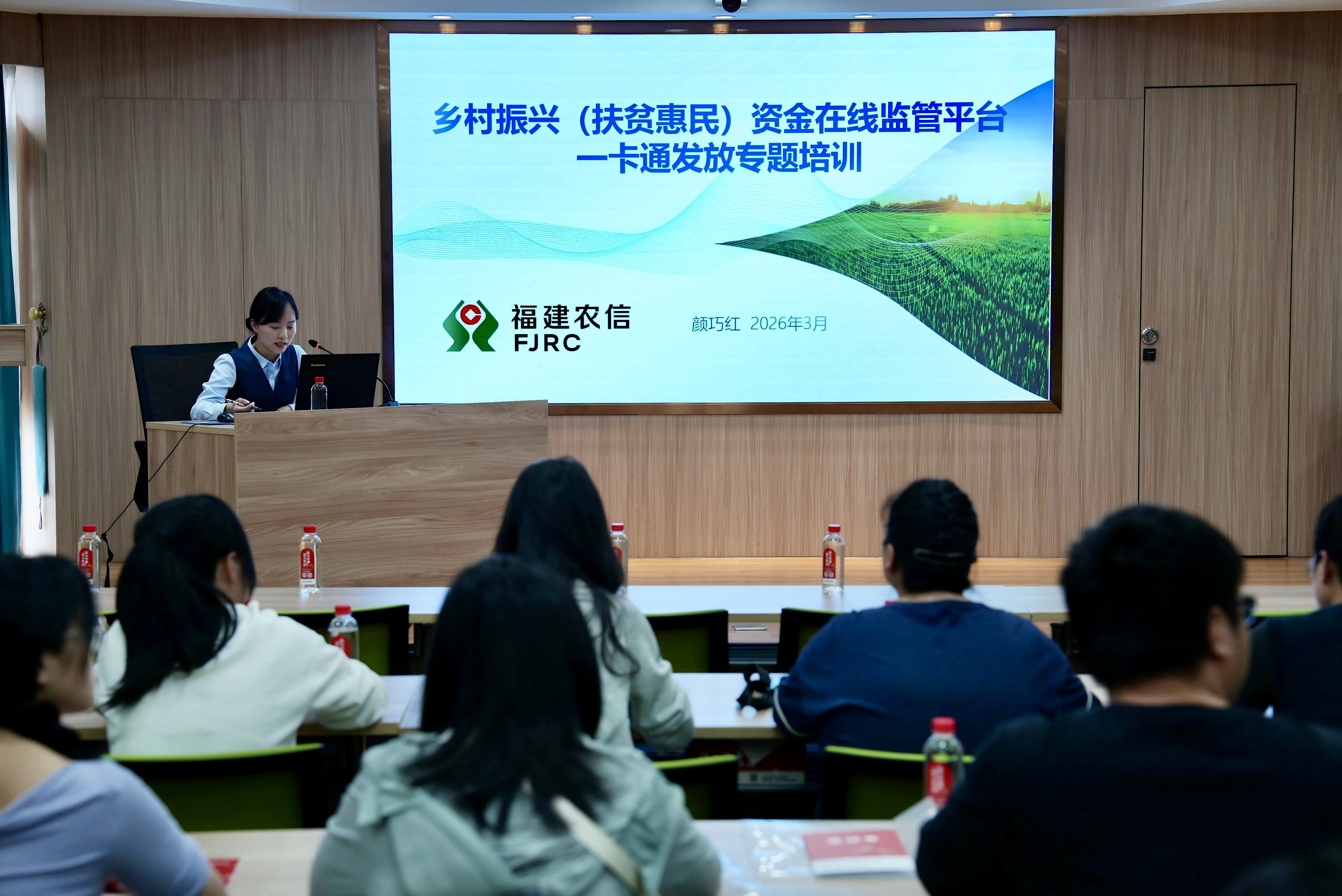 为进一步提升我县惠民惠农财政资金发放规范化、标准化水平,筑牢财政资金“精准、安全、及时”直达到户的工作根基。2026年3月25日下午,由永春县财政局主办、永春农信联社协办的福建省乡村振兴(扶贫惠民)资金在线监管平台“一卡通”管理操作培训会在永春农信联社顺利举行,各乡镇及相关单位“一卡通”系统具体经办人员参训,参训人数80余人。