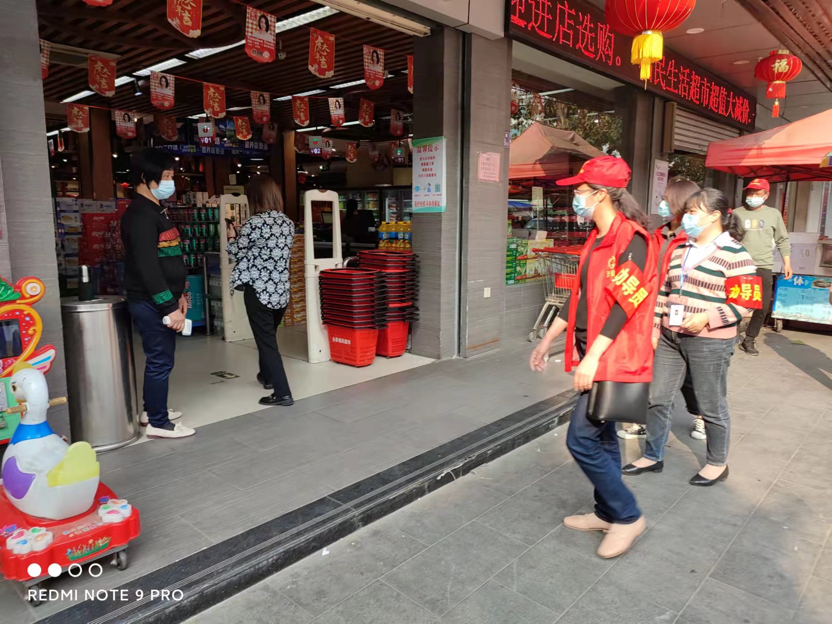 一线防控上的“巾帼红”。全镇11支党员先锋队、11支小区党员突击队中的巾帼不让须眉,她们身穿红色志愿者马甲,参与社区联防联控,协助做好人员进出登记、体温测量、生活保障等志愿服务;参与核酸检测志愿服务,协助做好人员信息登记采集,维护现场秩序,及时通知居民就近参加核酸检测。现场党旗、党员徽章、党员服务岗和团旗、团徽等巾帼志愿别样红。