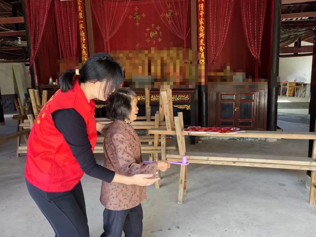 游戏开始,长者们调整身体平衡,手握平衡勺从起点出发,小心翼翼护送“鸡蛋”到达终点,不仅锻炼长者的专注力,还加强手眼协调能力。