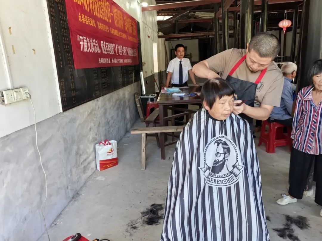 活动现场,在社工的组织下,长者有序排队,理发师志愿者按照顺序依次为长者们修剪头发。理发过程中,理发师志愿者运用娴熟、精湛的理发技术细心地为长者理发,围罩衣、修剪头发,并细致地询问长者的要求,提供符合长者需求的“私人订制”服务。并亲切地和长者唠家常,瞬间拉近了与长者之间的距离。现场一片和谐温暖。