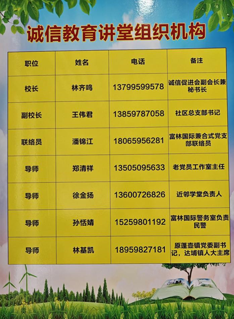 建设一个示范点。永春县富临国际小区位于永春县桃城镇北环路片区,面积75万平方米,4600套,常住居民人口约7000多人,选取富林国际小区作为诚信“进社区”示范点建设,可以辐射周围桃源华庭、鼎盛、碧桂园等永春几个较大的小区;通过在小区投放诚信文化广告宣传牌,营造诚信文化氛围;制定诚信示范小区评选规则,明确小区诚信社区建设标准;建设“两室一堂”,睦邻茶话室,为小区业主提供暖心的交流场所,让业主们在轻松愉悦的交谈中化解邻里矛盾、增进邻里情谊。楼长议事室:倾听居民声音,解决居民问题,创建美好家园。诚信(法治)教育讲堂:规范讲堂工作制度,完善组织结构,制定讲堂课程表,通过教育讲堂提高居民诚信(法治)意识;建设家风家训馆和琴、棋、诗、书、画工作室,让小区业主在闲暇时陶冶情操。