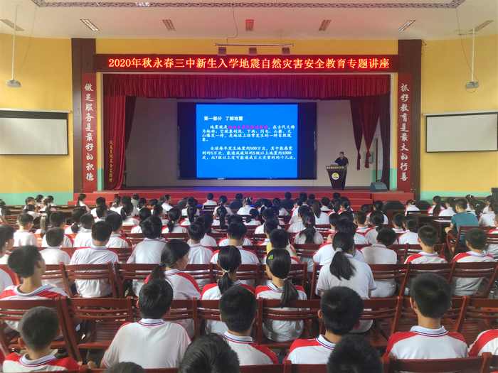 15日,省级防震减灾科学传播师施永宁老师还为初一和高一新生开设“敬畏自然 珍爱生命”防震减灾知识讲座。(永春三中)