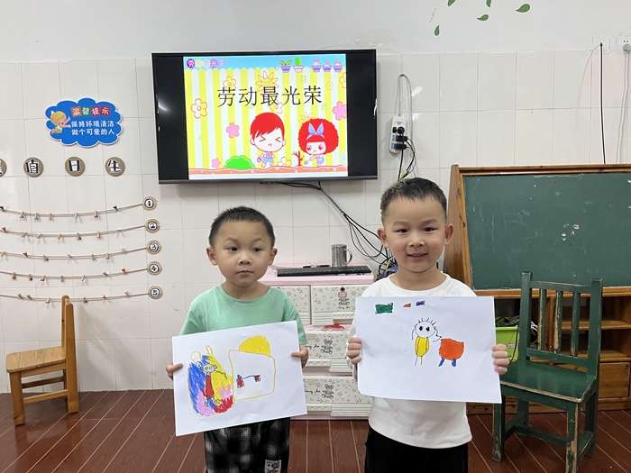 让孩子们通过看视频、图片等方式了解了“五一”劳动节的由来,懂得劳动最光荣的道理。让孩子们帮忙洗碗、扫地、擦桌子等,在劳动实践中,独立地完成力所能及的事情,体验劳动的快乐。(东关中心幼儿园)