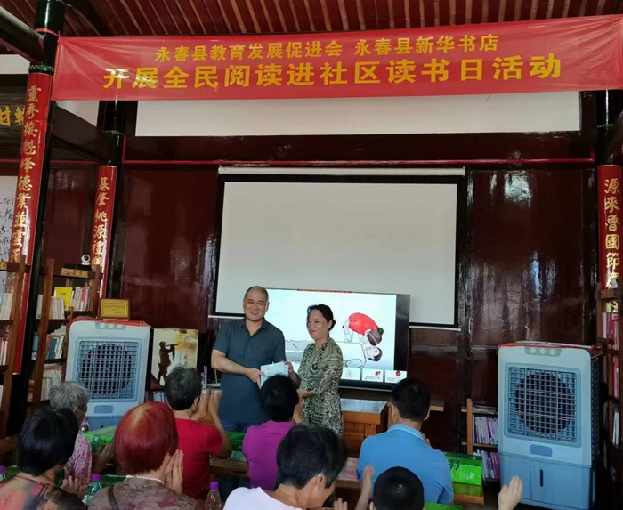 日前,县教育发展促进会联合县新华书店在永春桃场老区红色书屋(抗战时期中共永春支部旧址)开展“全民阅读进社区读书日”活动。县教育发展促进会负责人、县新华书店负责人等相关人员,以及周边社区居民代表参加了此次活动。