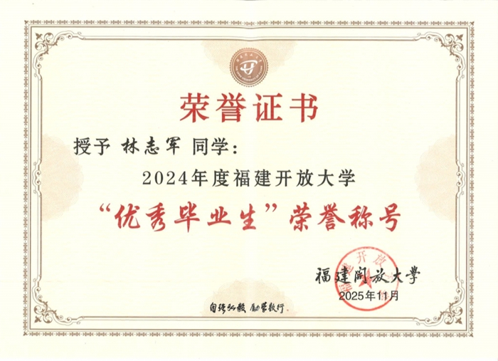 近日,2024年度福建开放大学优秀毕业生名单正式揭晓,福建开放大学永春学院学子黄少生、林志军凭借优异的学业成绩、突出的实践成效与社会担当成功上榜。
