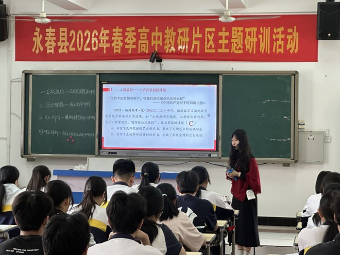 4月11日上午,我县2026年春季高中教研片区主题研训第一场活动在永春一中、永春侨中、永春二中三校同步展开。本次活动以“指向关键能力的备考策略研究”为主题,聚焦高三二轮复习备考,涵盖数学、物理、历史三个学科,通过公开课与专题讲座相结合的形式,搭建教师专业成长与教学研讨的高效平台。