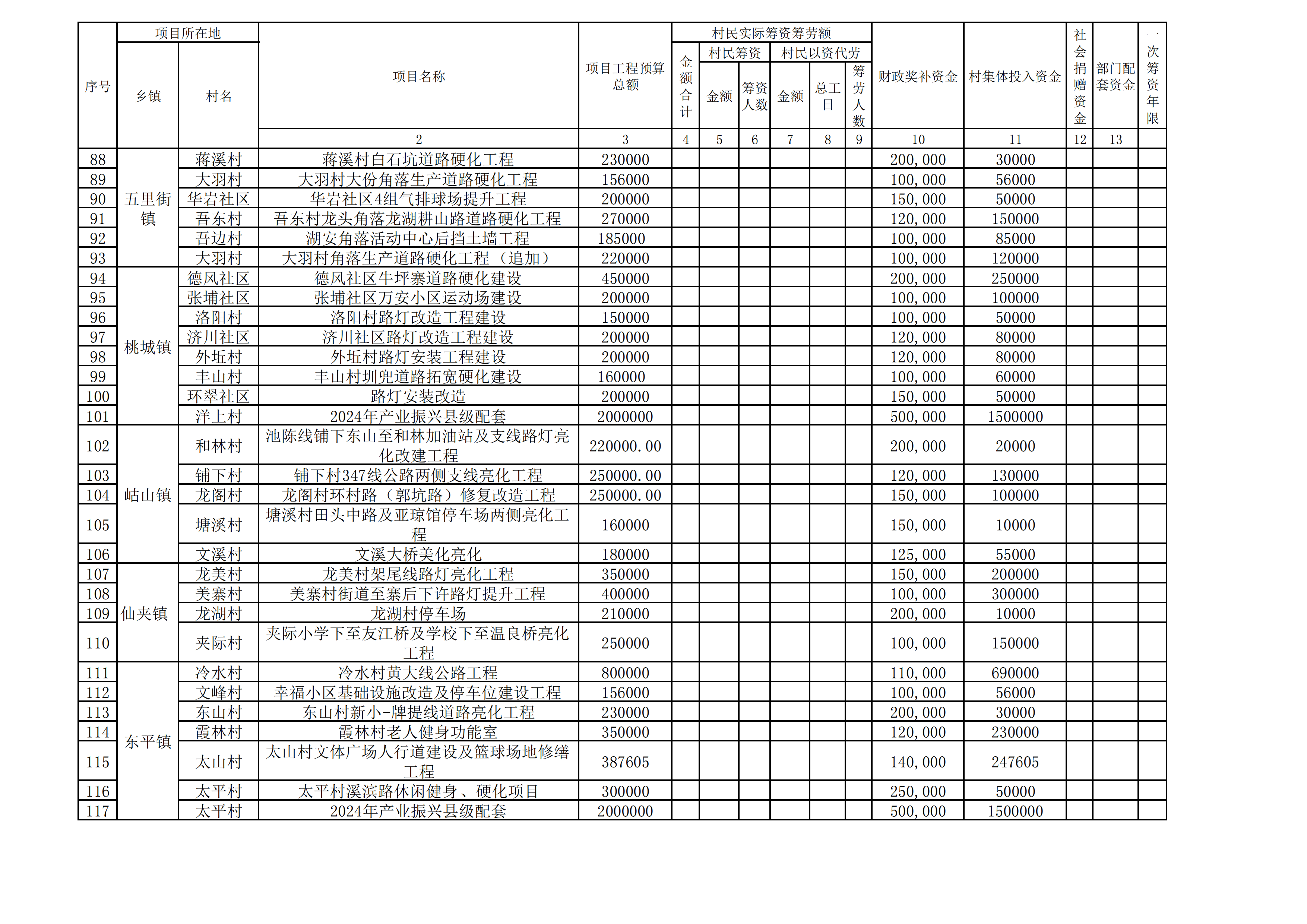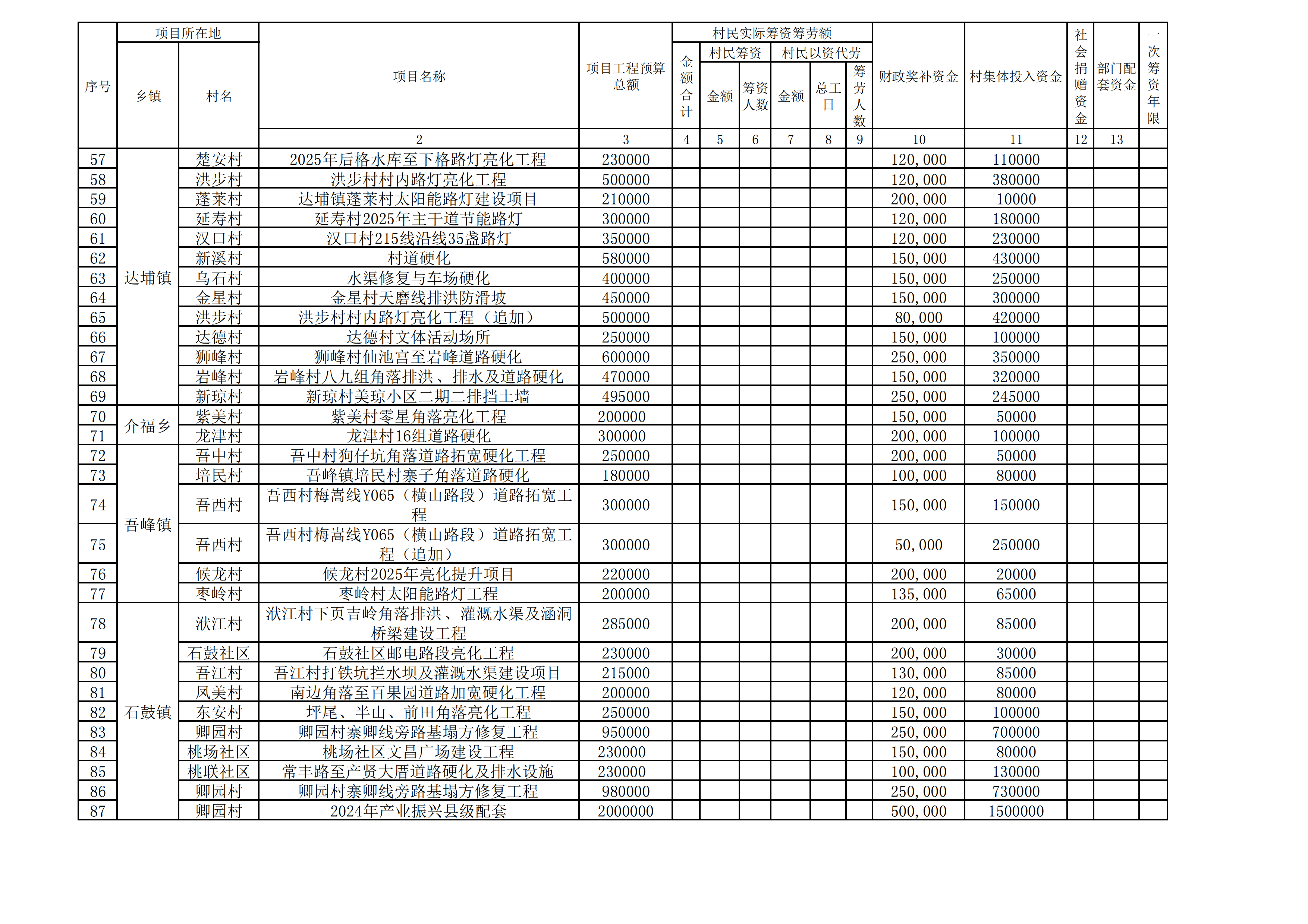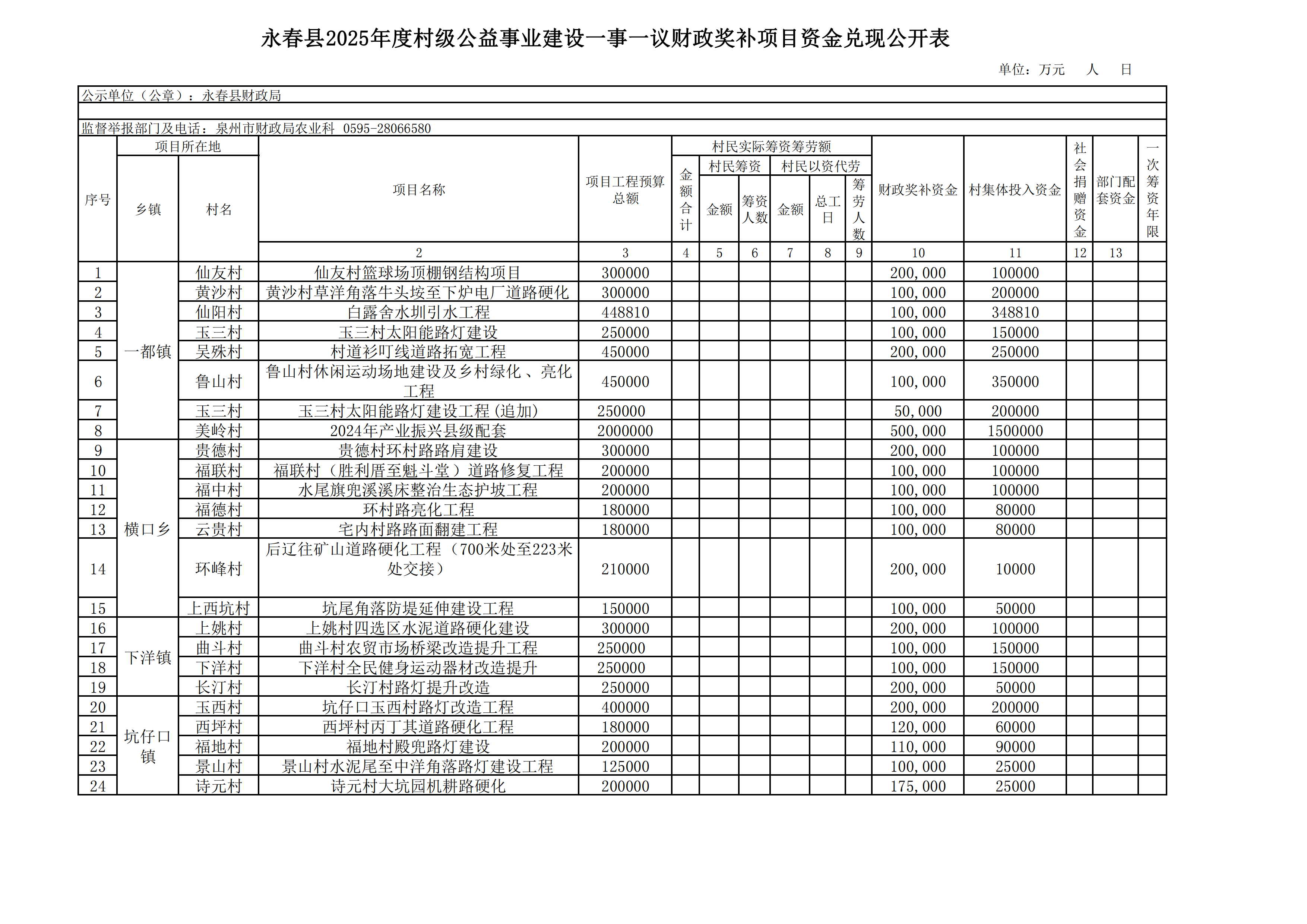 永春县2025年度村级公益事业建设一事一议财政奖补资金兑现项目公开表