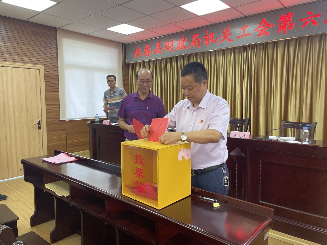会议审议通过了《永春县财政局机关工会第六次会员大会选举办法》,投票选举产生了林金建、刘仪玲、陈志轩、康华雯、王秋燕、吴德伟、张宝英、陈时洁、黄泽超等九位同志为县财政局机关工会第六届委员会委员, 林金建同志当选工会主席,吴德伟、陈时洁当选副主席;陈志轩、刘舒芹、黄泽超等三位同志为县财政局机关工会第六届经费审查委员会委员,陈志轩同志当选主任;刘仪玲、康华雯、张宝英、潘燕雯、王秋燕等五位同志为县财政局机关工会第六届女职工委员会委员,刘仪玲当选主任。