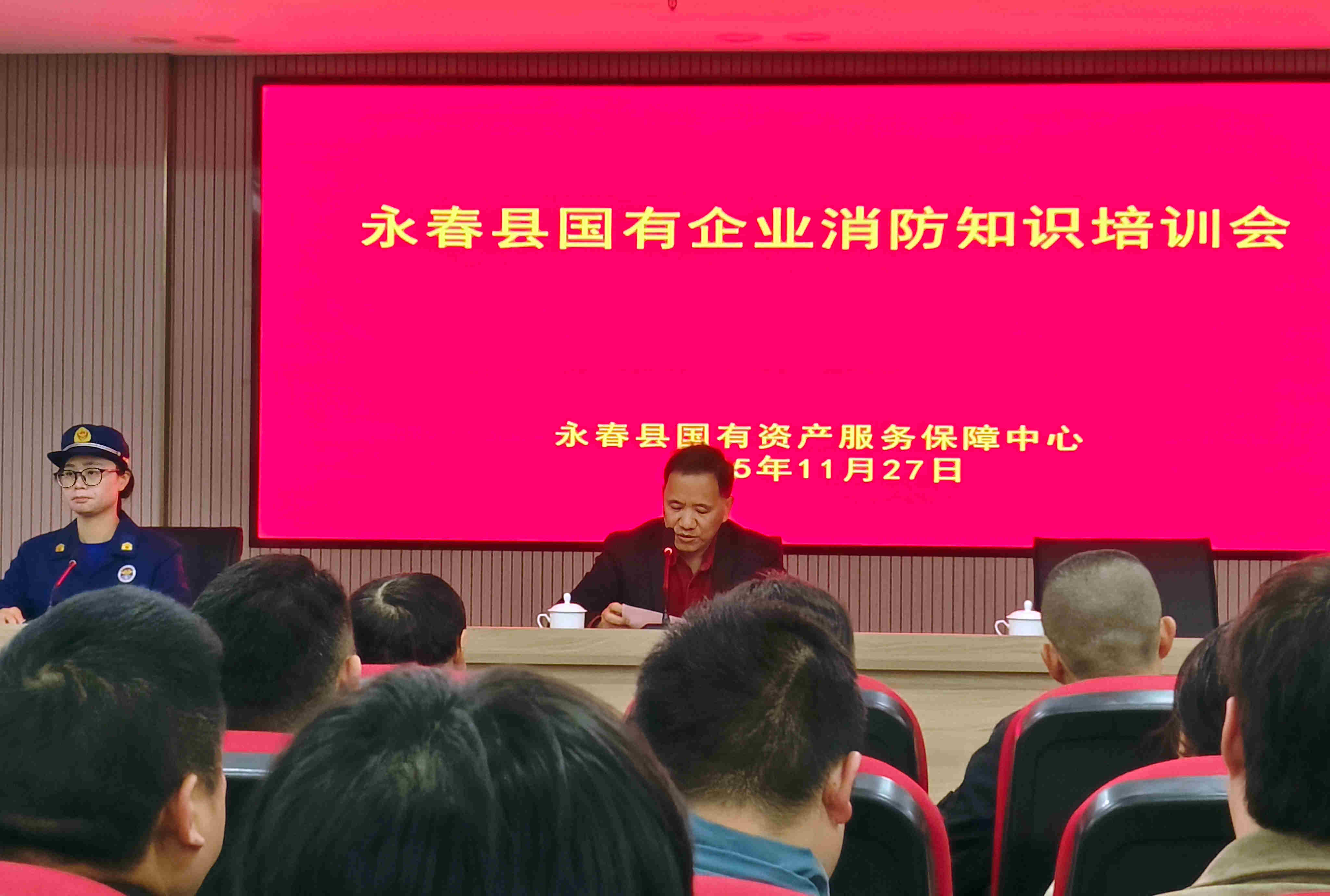 为深入贯彻落实2025年全国消防宣传月“全民消防、生命至上——安全用火用电”主题精神,永春县国资中心于11月27日在县城建集团二楼会议室开展县属国有企业消防知识培训活动。活动严格对标国务院安委会“识风险、懂预防、早整改、真实训”四大行动要求,47名县属国企分管领导及应急抢险人员参与,由县消防救援大队资深教官主讲。