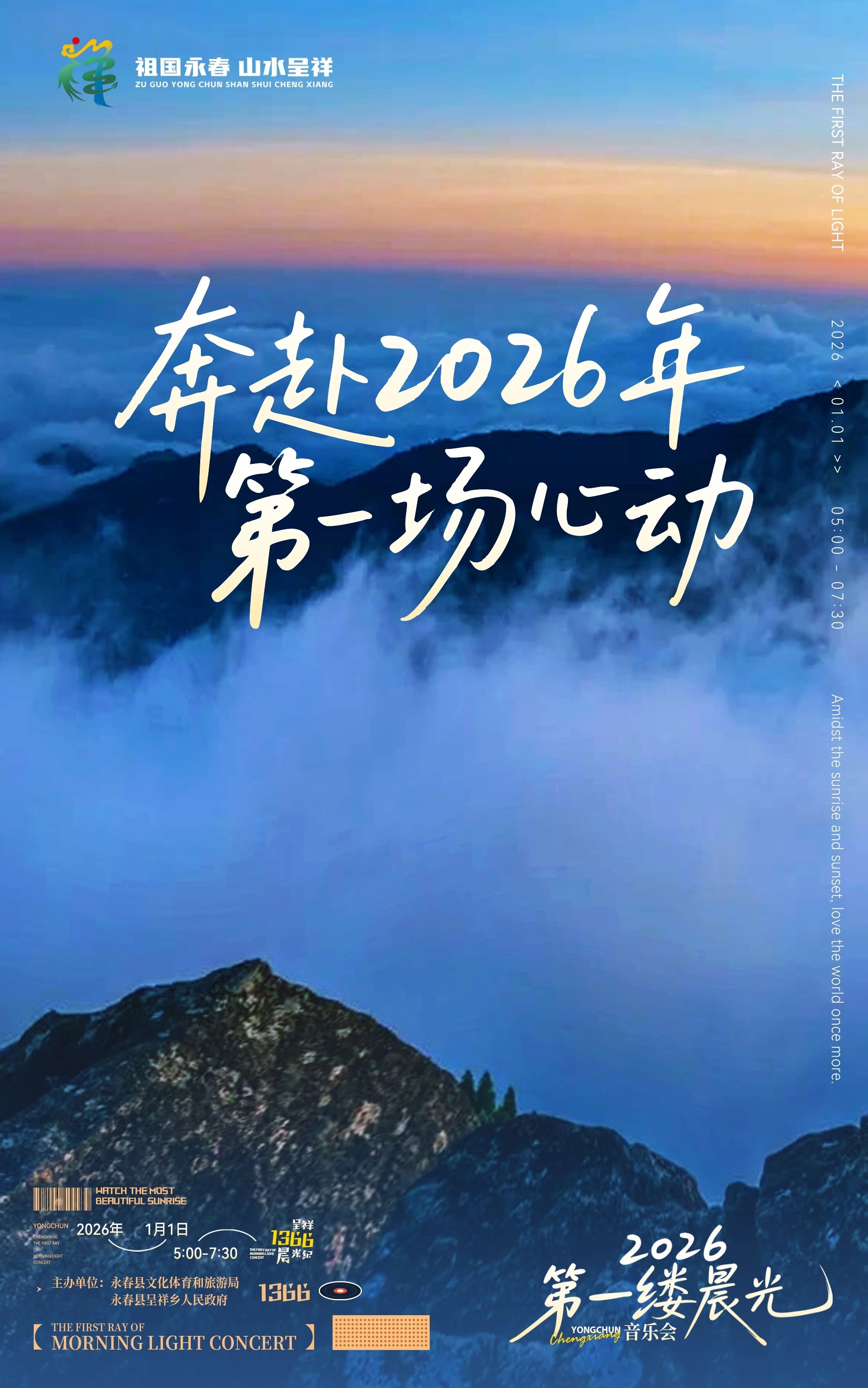 迎着2026年第一缕晨光,在永春雪山之巅,让新年被音乐和日出同时唤醒。