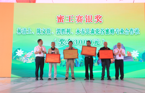 在永春县首届“农信杯”蜜王赛颁奖仪式上,我镇林农郭胜利的蜂蜜获评银奖。
