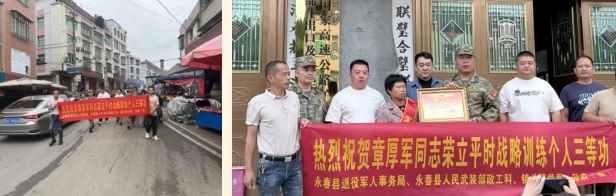 为营造尊崇军人、关爱军属的浓厚氛围,2024年11月13日,由永春县人民武装部、永春县退役军人事务局、锦斗镇武装部、退役军人服务站、社工站工作人员暨锦溪村“两委”组成的报喜团,到锦溪村为现役军人章厚军的家属送上了三等功的喜报。