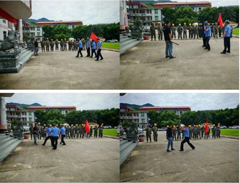 在消防应急演练中,陈培水同志现场演示干粉灭火器的操作要点,强调干粉灭火器“一查二摇三喷射”操作规范,党员干部分组进行灭火实操,精准运用设备扑灭模拟火情。
