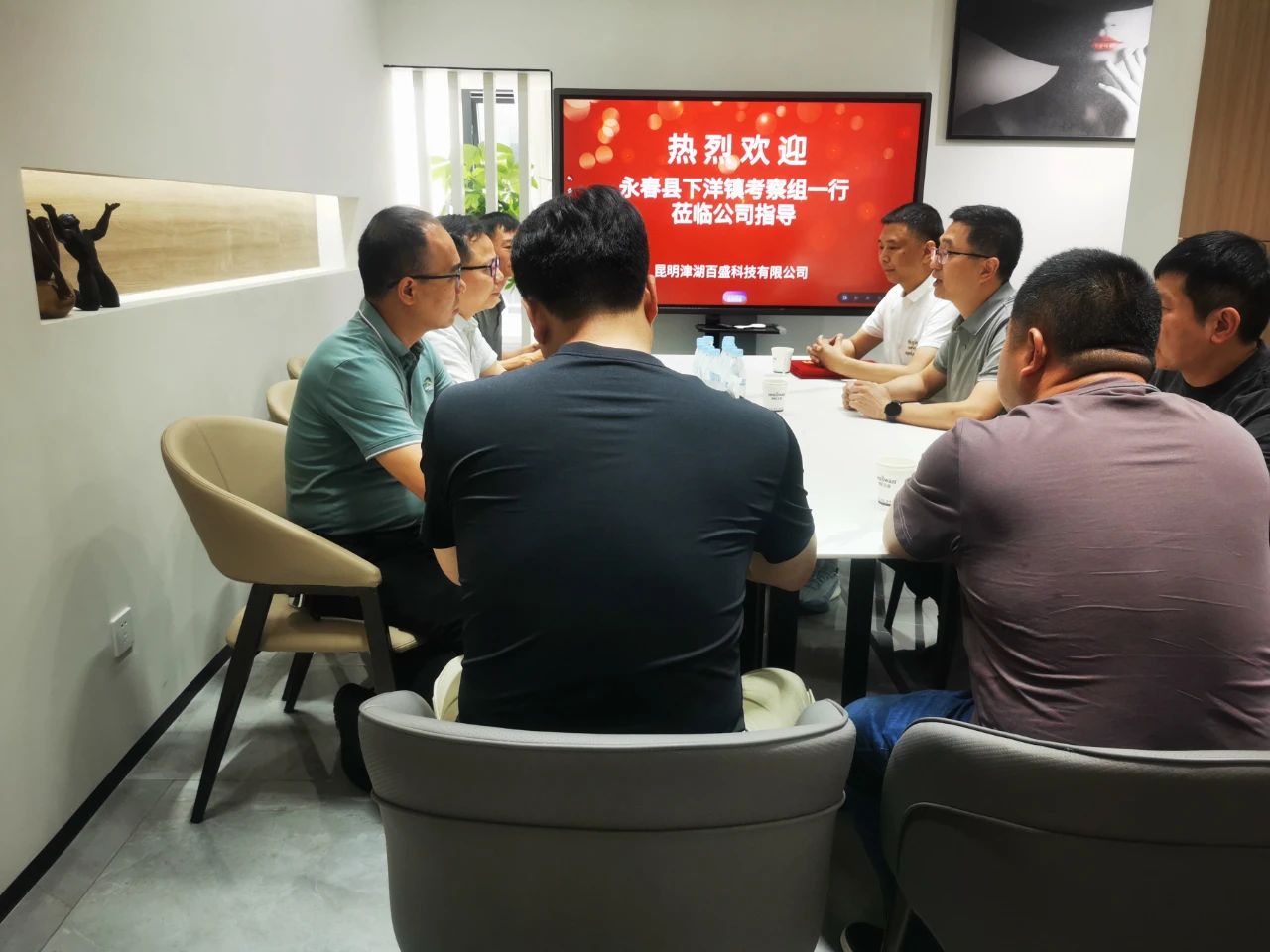 在昆明津湖百盛科技有限公司,考察组详细了解其经营状况、产业布局、技术优势及发展规划,并就双方可能达成的合作模式进行深入探讨。下洋镇党委书记陈培臻表示,下洋镇投资环境良好,发展潜力大,热忱欢迎企业家到下洋投资兴业。