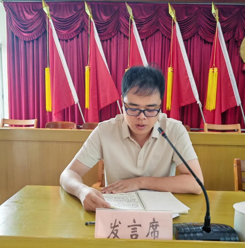 镇党委书记洪炳灶同志作强调讲话:一是奋勇争先,工作稳中有进。今年来,在全镇上下的共同努力下,经济指标平稳运行、教育事业再创新高、实干导向愈发鲜明,各项工作都取得较好成效;二是鼓足干劲,力争再上台阶。乌髻文化旅游推介活动要突出高质量、扩效应;城镇发展要提能级、强配套,全力争创永春中部中心城镇;要以镇级竹产业协会为抓手,聚焦打造毛竹丰产林基地等重点工作,推动竹产业夯基础、快成势;要立足资源禀赋,成立工作专班,带动农产品创品牌、上规模;安全维稳要持续抓、守底线,扎实做好涉水安全、防汛备汛等各项工作;要紧盯政策导向,做好做实“十五五”规划谋划工作。三是党建引领,树牢实干导向。要有政治规矩意识,落实全面从严治党主体责任,扎实开展深入贯彻中央八项规定精神学习教育,深入开展群众身边不正之风和腐败问题集中整治,镇村干部要自觉遵守各项规章制度。要有创先争优意识,强化荣誉感、位次感,主动担当、积极作为,推动各项工作提质增效。要有敢于担当意识,树牢全镇“一盘棋”思想,形成穿透落实、闭环落实的工作合力。
