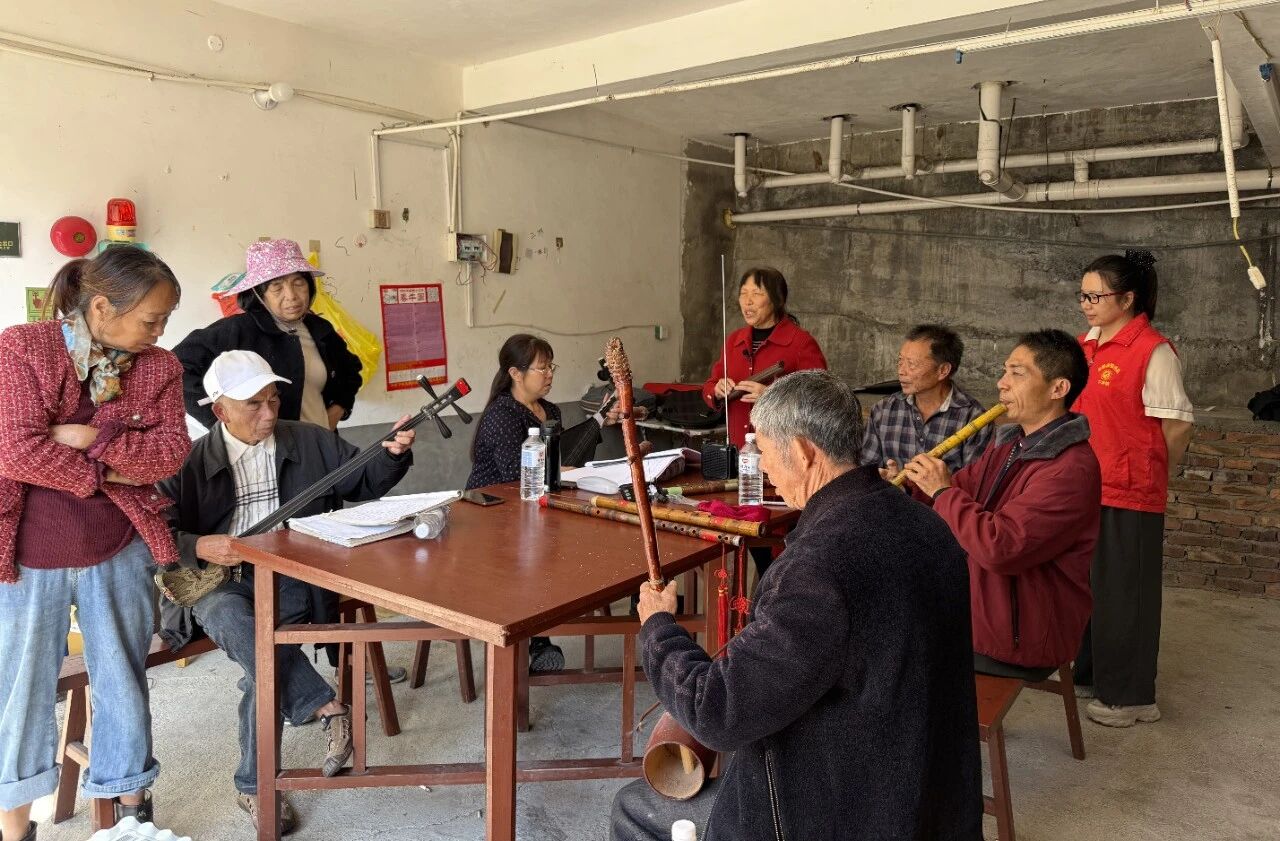 南音表演者端坐台前,琵琶、洞箫、二弦等乐器奏响,悠扬婉转的古乐瞬间弥漫。经典南音曲目轮番上演,醇厚的唱腔、典雅的旋律让老人们听得如痴如醉,不少老人跟着节奏轻轻点头,脸上满是享受的神情,现场氛围静谧而温馨,尽显传统艺术的独特魅力。
