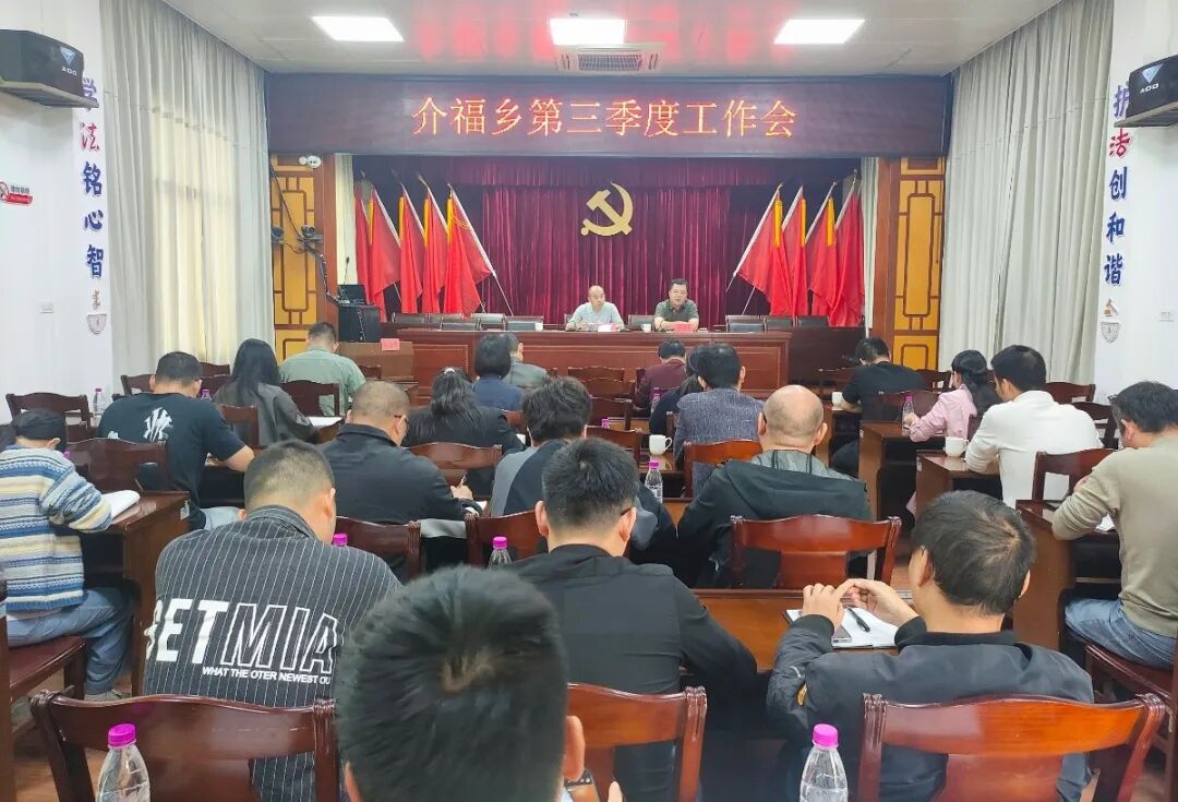 11月10日,介福乡召开三季度工作会议,复盘梳理前三季度工作,部署下阶段任务,动员全乡上下决战四季度、冲刺全年红。乡全体干部职工、各村主干参加会议。