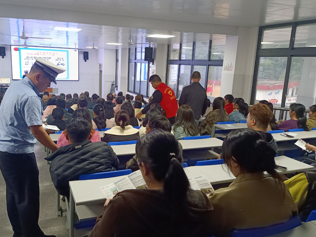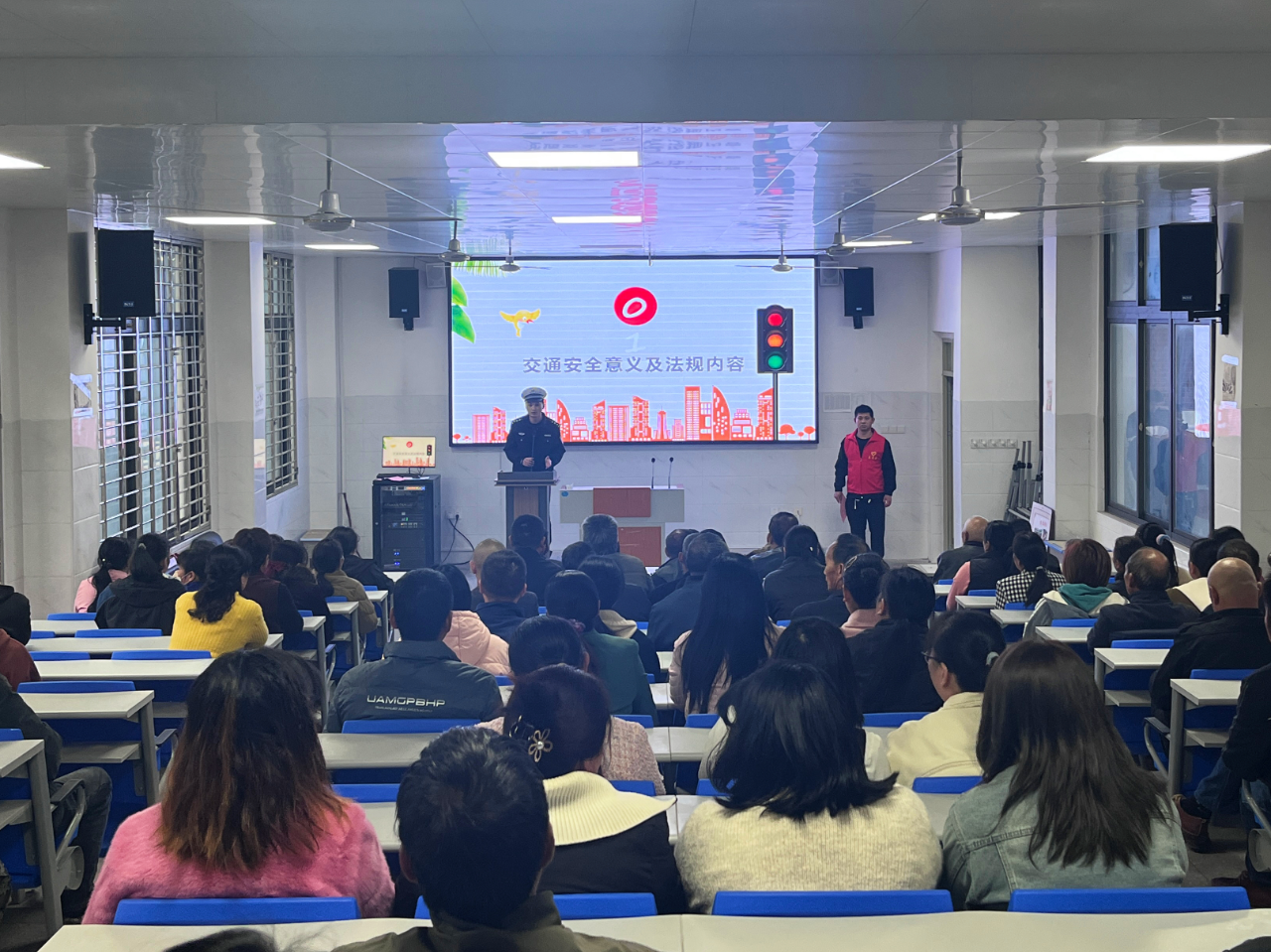 学生专场结束后,宣讲活动随即转入多媒体教室,面向全校家长开启“安全守护课”。工作人员聚焦家长监护责任,重点讲解“一盔一带”的重要性——驾车务必系好安全带,骑乘摩托车、电动自行车必须佩戴安全头盔,同时明确指出酒驾、超速、行车接打电话等违法行为的严重后果。针对家长接送学生的常见问题,特别强调“拒绝超员车辆、规范停车避让学生”,引导家长以身作则,用文明出行习惯为孩子树立榜样;同时严肃叮嘱家长,严禁将摩托车、电动车钥匙交给学生让其自行驾驶,从源头杜绝安全隐患。活动现场,工作人员向家长逐一发放宣传资料,确保安全理念传递到每一个家庭。