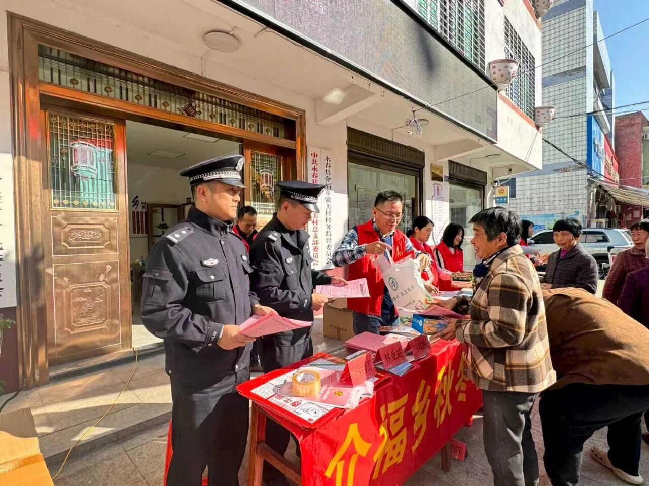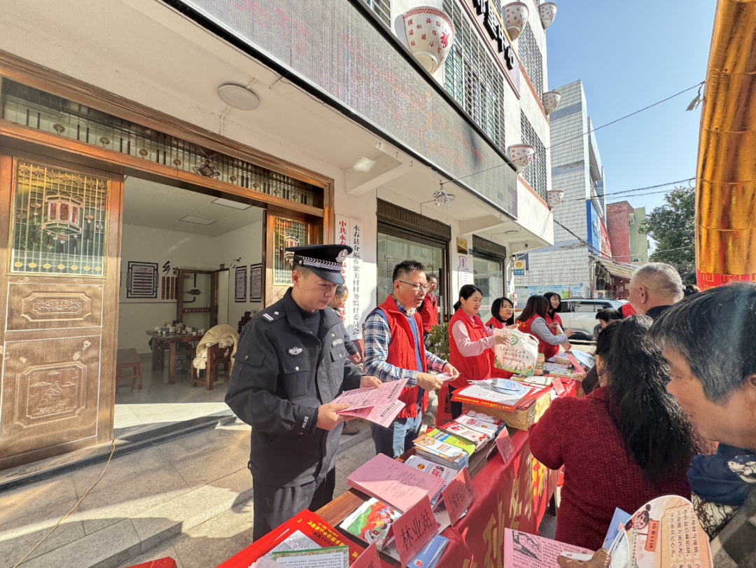 在活动现场,县农业农村局、县自然资源局、介福乡综治中心、派出所、司法所、林业站、河长办的工作人员向群众发放《中华人民共和国宪法》《中华人民共和国民法典》《福建省殡葬管理办法》《中华人民共和国道路交通安全法》《中华人民共和国食品安全法》《中华人民共和国禁毒法》《中华人民共和国乡村振兴促进法》《中华人民共和国农产品质量安全法》《中华人民共和国动物防疫法》《宪法与自然资源》《山体滑坡应对与自救》《自然资源领域安全生产》等法治宣传资料1000多份。