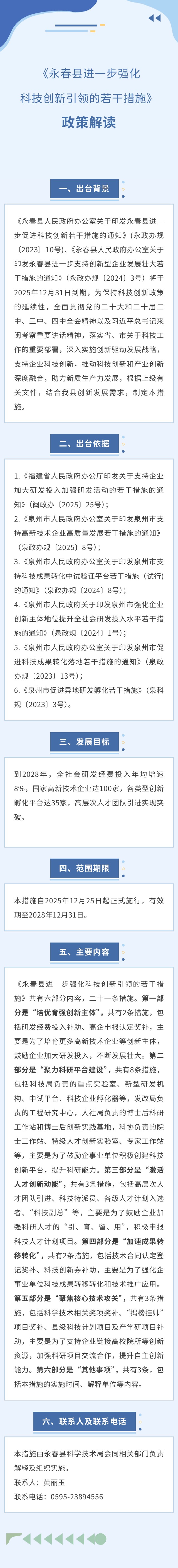 一图读懂《永春县进一步强化科技创新引领的若干措施》