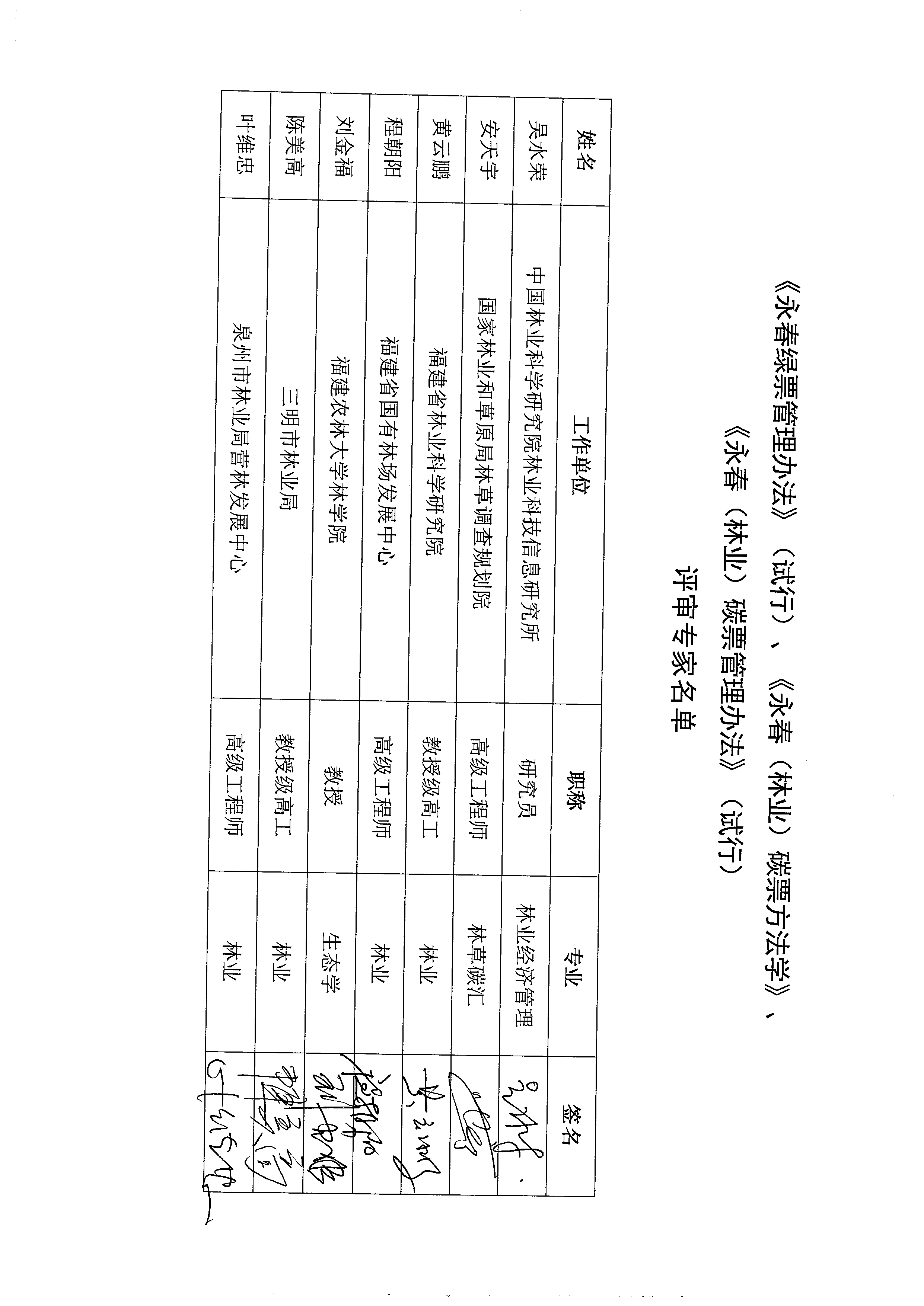 1.《永春林业碳票项目减排量申请登记表》;