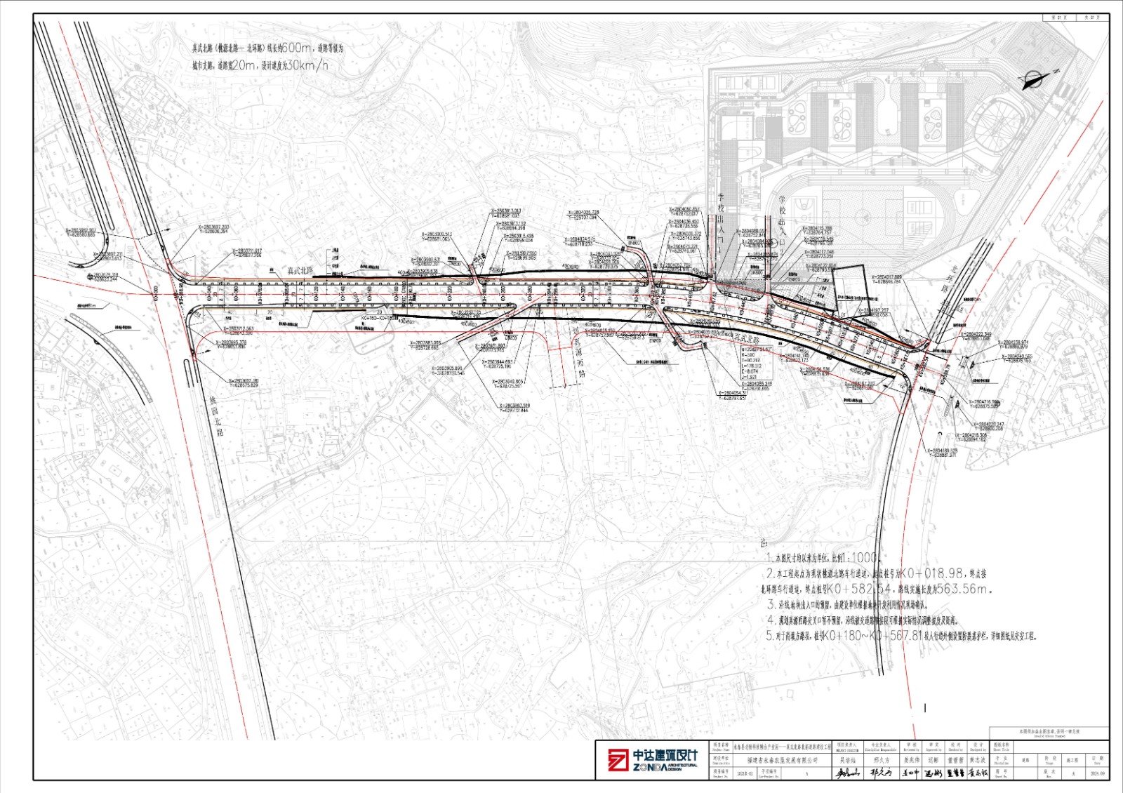 二、项目建设内容:拟建真武北路北拓道路,起点桃源北路至终点北环路,线长约600米,道路宽度20米,道路等级为城市支路,设计速度为30km/h 。